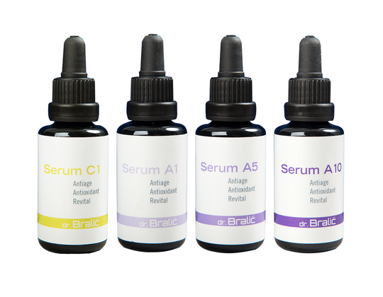 Dr. Bralić linija seruma za kožu je antiage linija – namjenjena je borbi protiv starenja kože. Sadrži moćne antioksidanse u vrlo visokim koncentracijama (danas “must have“ u antiage proizvodima), koji pomažu u obnavljanju kože lica prevenirajući znakove starenja te ublažavajući već nastale bore i promjene na licu: